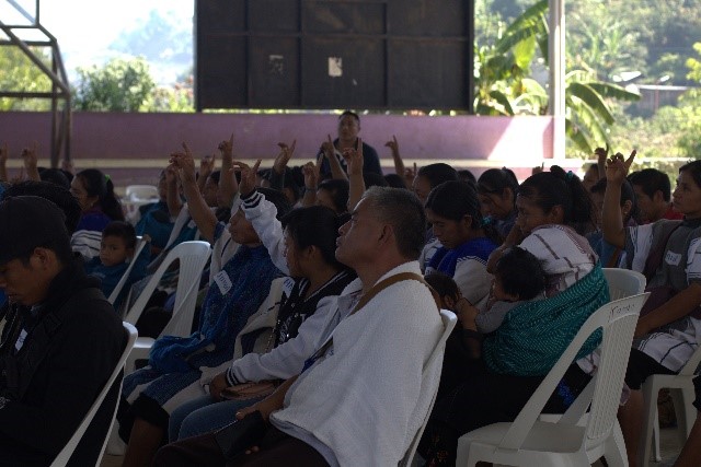 ESTRATEGIA: Impulsar la creación, fortalecimiento y consolidación de una mesa de diálogo dónde participen organizaciones de la sociedad civil y comunidades del municipio, así como diseñar colectivamente e implementar un proceso de fortalecimiento y formación, de procesos autogestivos a través del diálogo de saberes tzeltales, que fortalezcan y desarrollen habilidades y capacidades de los hombres, mujeres, jóvenes niñas y niños que permitan el impulso de procesos propios, acordes con sus necesidades y realidades del municipio.